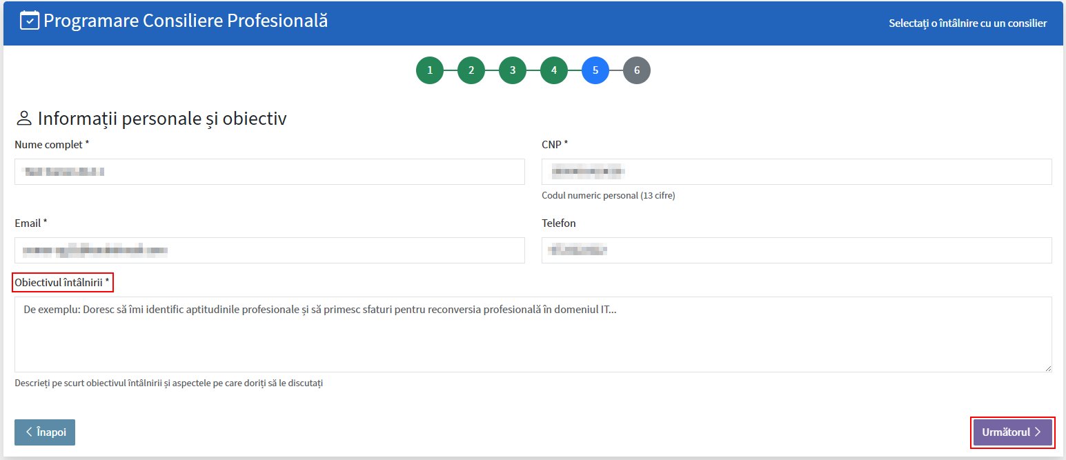- Informare și consiliere profesională, dacă optați pentru o sesiune de consiliere;